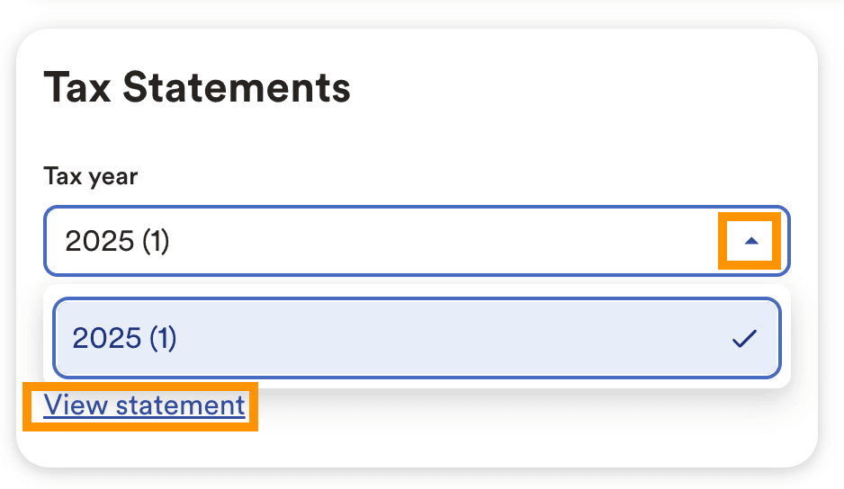 - Select TAX STATEMENTS (at the top) to view your tax forms (if available).